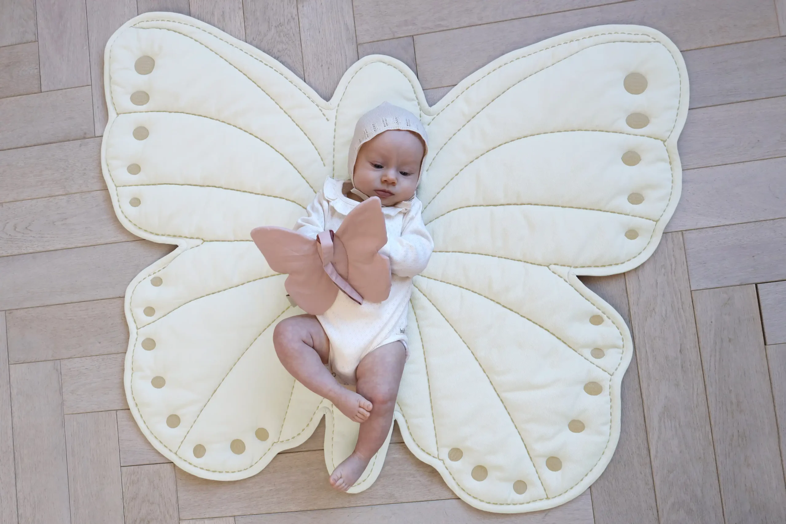 Прекраснa подлога за игра во форма на пеперутка која ќе внесе забава и безвременска елеганција во вашиот дом. Изработена од најмек GOTS-сертифициран органски памук, ќе ги воодушеви и бебињата и возрасните. Совршена е како подлога за бебешка гимнастика или како удобно место за топли и спокојни моменти заедно.
