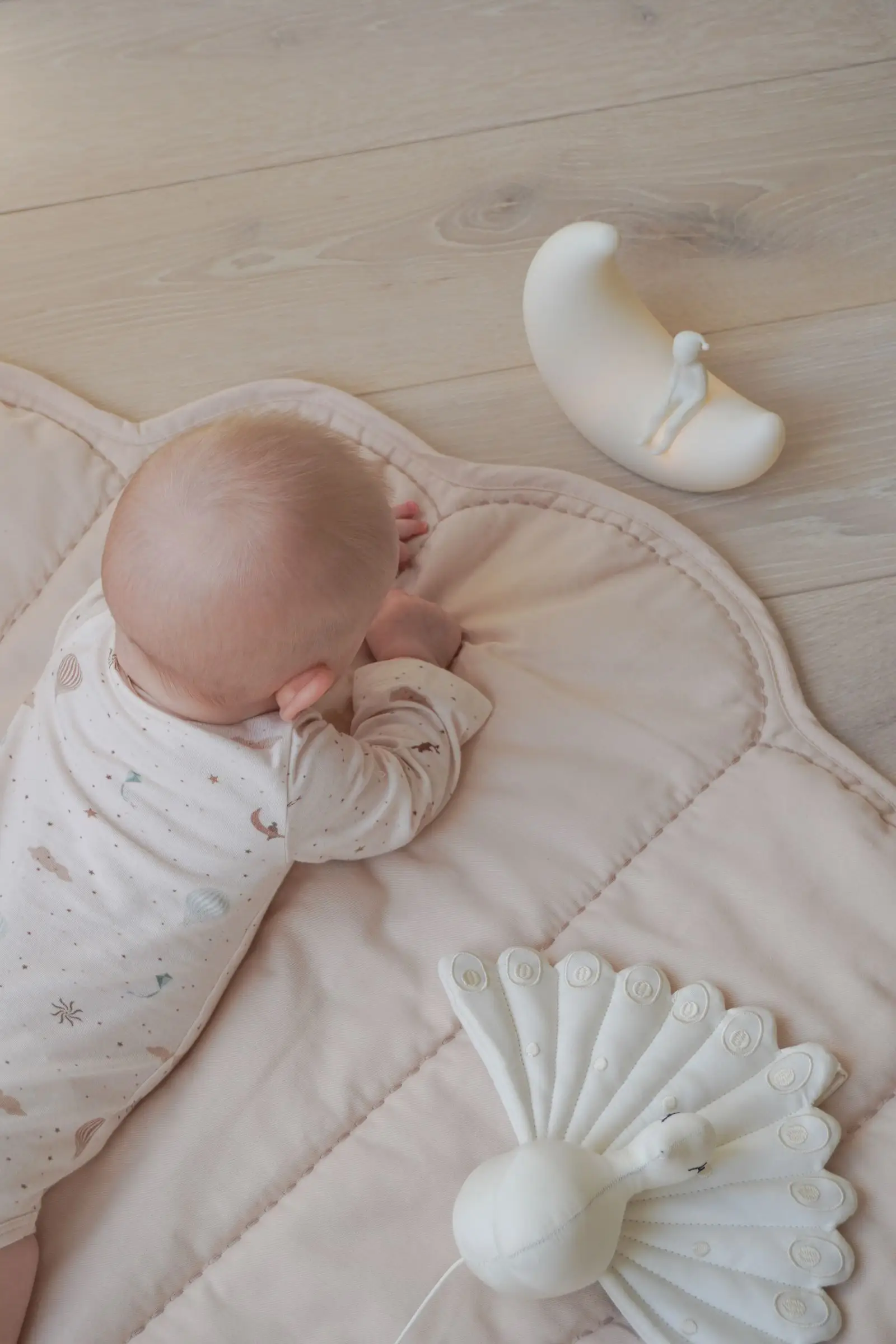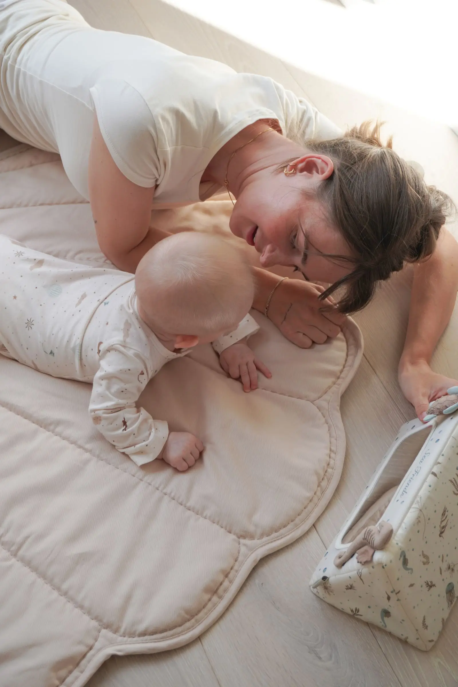 Прекраснa подлога за игра во форма на школка која ќе внесе забава и безвременска елеганција во вашиот дом. Изработена од најмек GOTS-сертифициран органски памук, ќе ги воодушеви и бебињата и возрасните. Совршена е како подлога за бебешка гимнастика или едноставно како удобно место за топли и спокојни моменти заедно.