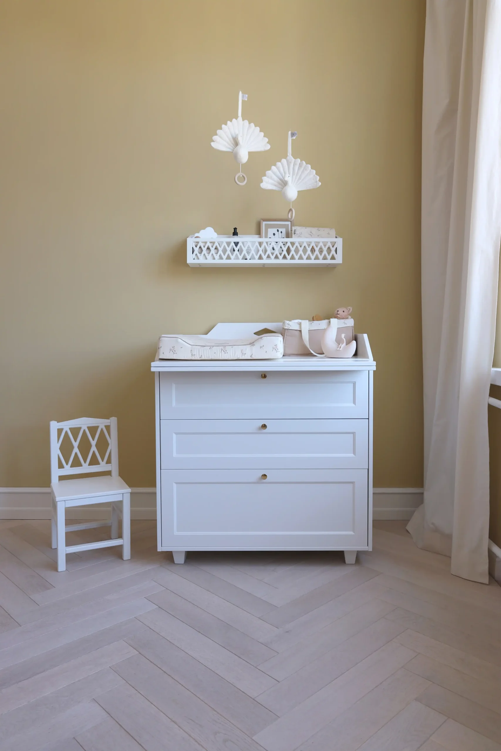 Додајте удобност и елеганција на секојдневните рутини со оваа мека перница за пресоблекување. Дизајнирана со високи, заоблени рабови кои го чуваат вашето малечко удобно и сигурно за време на пресоблекувањето. Отстранливата навлака е отпорна на нечистотија и вода, спојувајќи функционалност со елегантен, дискретен стил.