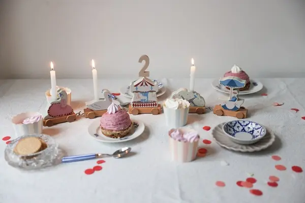 Прославете го посебниот ден на вашето дете со овој забавен роденденски воз. Сертифицирано од FSC, изработено од природно и обоено дрво во нежни бои, вовчето има пет разиграни, слатки ликови инспирирани од винтиџ забавен парк. Поврзете ги деловите со метални куки, а за да го означите роденденот, вовчето доаѓа со дрвени броеви од 1 до 6, што го прави повторно употребливo за сите родендени во раното детство. Овој воз е повеќе од декорација — тоа е семејно богатство, кое додава магија на посебниот ден на вашето дете и создава трајни спомени и заеднички моменти на среќа и возбуда.