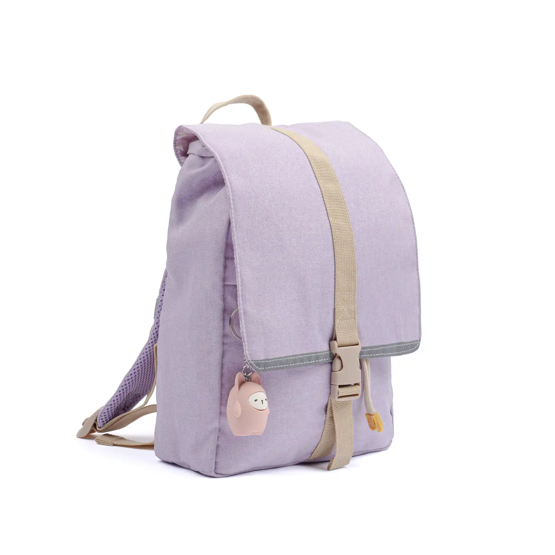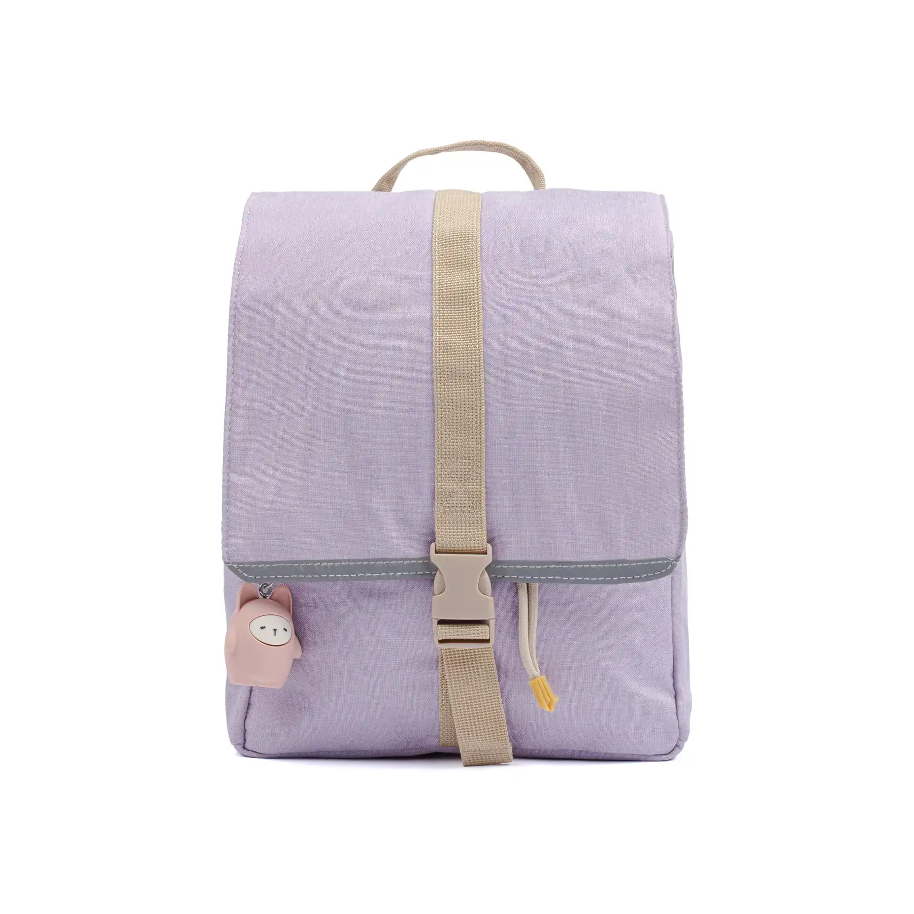 Овој ранец е совршен за мали прошетки и секојдневни авантури. Има практичен преден џеб со патент за ситници и се затвора со врвка и преклоп со шнола. Дизајниран за удобност, ранецот има обложени прерамки и прилагодлива лента. Рефлектирачките детали на предната и задната страна ја подобруваат видливоста во сообраќајот. Внатре има две практични прегради за организирање на помали предмети, како и дијамантска значка за име, за да се избегнат замени во градинка или училиште.